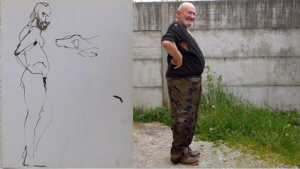 The project consists of video recordings of four sketches I made of the model Lojze in 1989 and, in the same poses, Lojze himself 25 years later. The duration of each single video sequence is three minutes, which refers to “three-minute quick sketches”, a time-limited drawing exercise that students practised at the art academy..