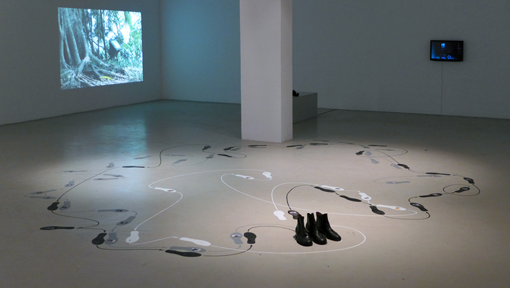 In Düsseldorf I showed my experience from China in the manner of a diagram for dancing steps, using black, white and gray footprints to map out the “movement” of the three shoes.